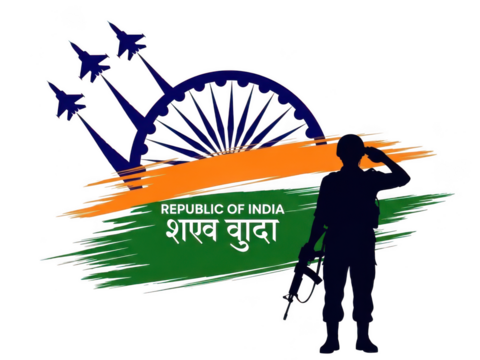 Indian soldier saluting with ashoka chakra and fighter jets isolated on transparent background