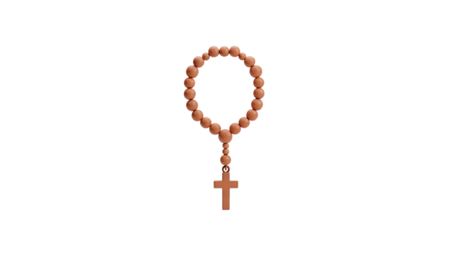Wooden christian cross on transparent background, representing spiritual symbol of faith, sacrifice, redemption