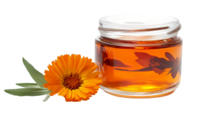A jar of calendula salve for skin healing, Transparent background, PNG file