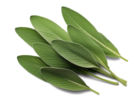 Sage leaves isolated on transparent or white background, png