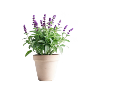 Blooming salvia plants with vibrant purple flowers and lush green leaves, beauty on transparent background