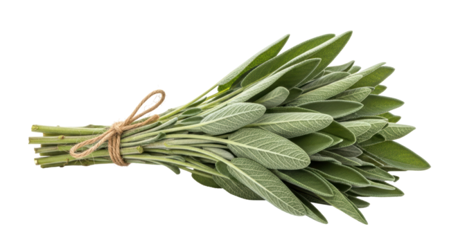 Fresh sage leaves isolated on transparent background, aromatic herb for cooking and seasoning, culinary ingredient