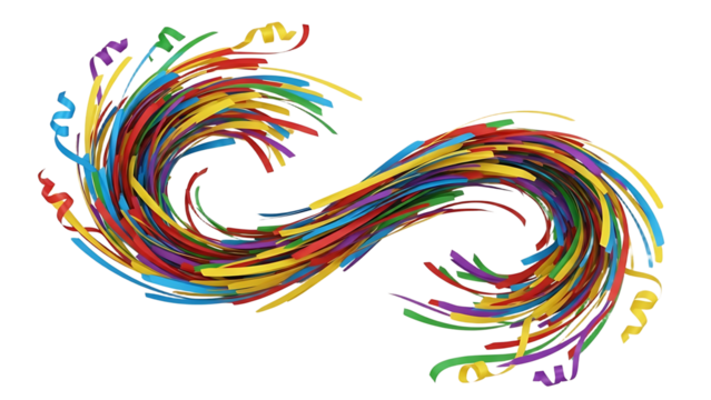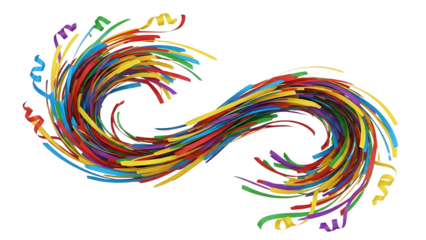 A colorful swirl of ribbons on transparent background celebrating brazilian carnaval