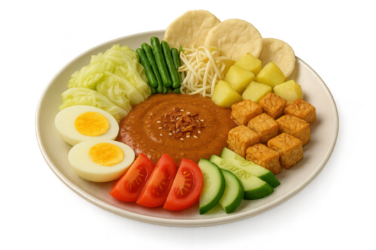 Delicious Indonesian Gado-Gado salad isolated on transparent background