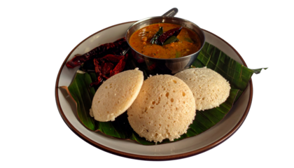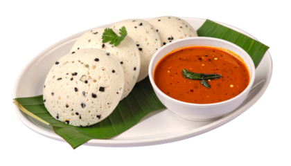 South indian idli vada sambar meal isolated on transparent background