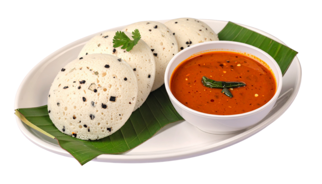 High-Resolution Image of Idli with Chutney on White Background