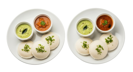 South indian idli with chutney and sambar transparent background cutout png