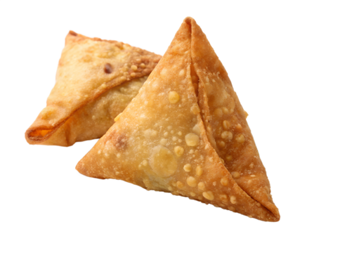 Crispy fried samosas isolated on transparent background