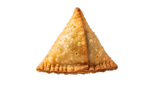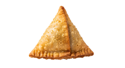 Delicious samosa isolated on transparent background, a savory pastry filled with spiced potatoes, peas, and lentils, perfect as a snack or appetizer, crispy and flavorful