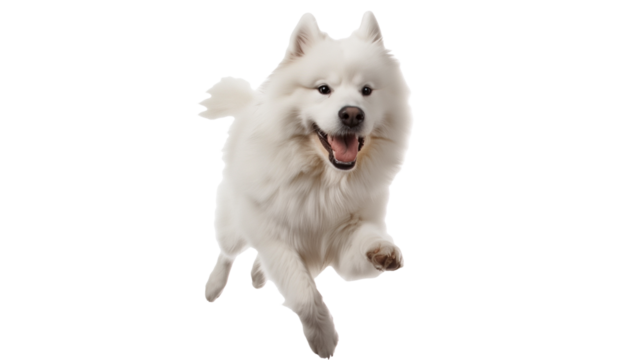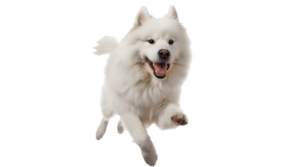 Healthy Samoyed dog jumping isolated on a transparent background
