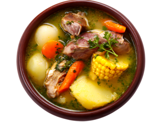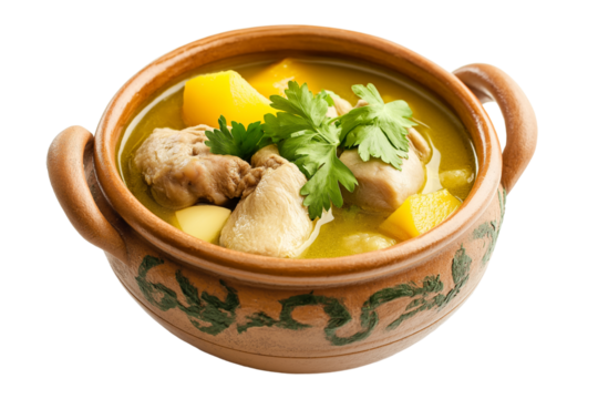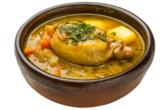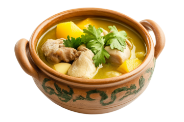 Panamanian sancocho de gallina chicken soup isolated on transparent white background