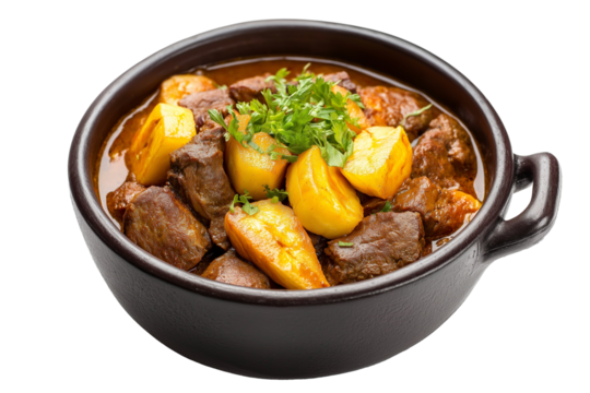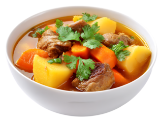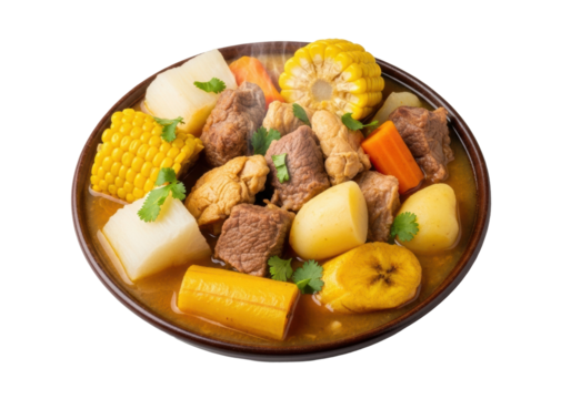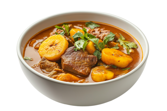 Dominican sancocho meat stew with plantains isolated on transparent white background