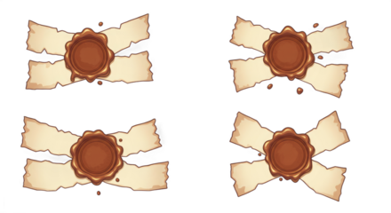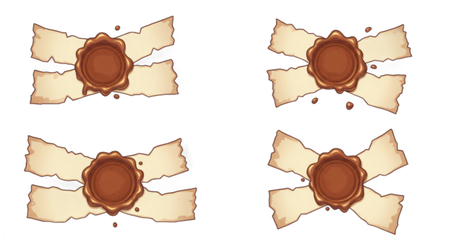 Collection of aged parchment seals against a stark white canvas of simplicity