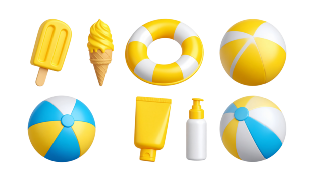 A vibrant striped beach ball, perfect for summer fun. The ball is inflated, and ready to be used Isolated on a transparent background