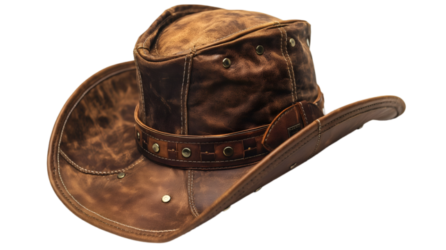 Boho Leather Cowboy Hat Premium Aged Headwear, Handmade Western Accessory.