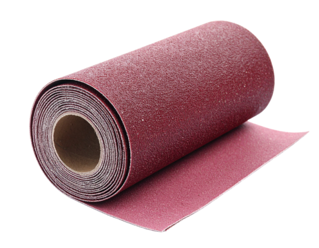 Roll of Coarse Red Sandpaper Isolated on White Background, abrasive material tool