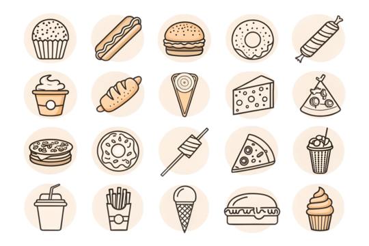 Comprehensive Set of Fast Food and Snack Outline Icons
