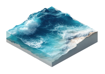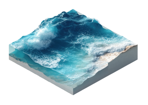 Ocean wave breaking on sandy shore, isolated on transparent background