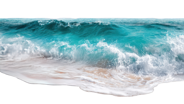 Ocean waves cresting, turquoise water, breaking, sandy edge