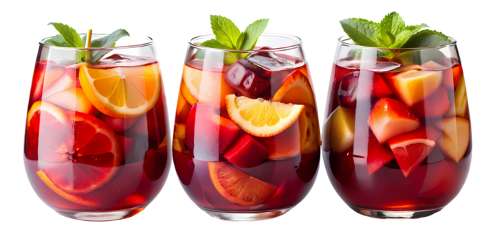 Refreshing sangria drink in glass with fruits on a transparent background, PNG image, PNG file.