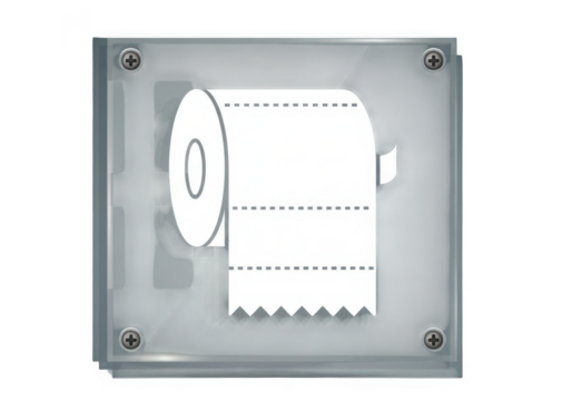 Toilet paper roll in a clear dispenser isolated on transparent background
