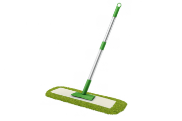 Green flat mop cleaning tool for household chores, hygiene, and sanitary floor maintenance on transparent background