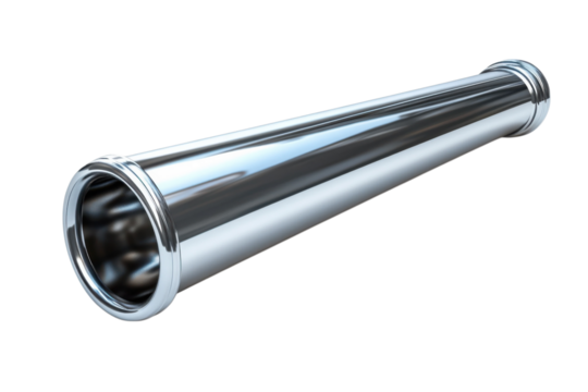 Polished stainless steel sanitary tri clamp pipe fitting for industrial fluid transfer applications on transparent background