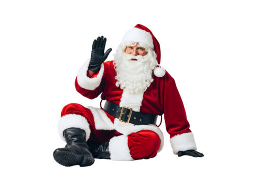 Cheerful santa claus with transparent background relaxing with gifts