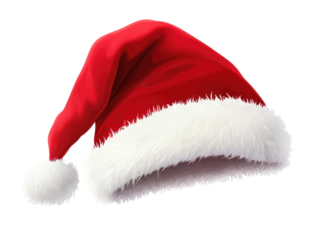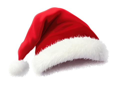 Red Santa hat with white fur trim, holiday spirit, white isolate background. transparent background
