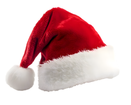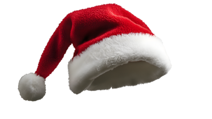 Real photo of a red Christmas Santa Claus hat with isolated on transparent or white background, png