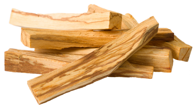 Pile of Palo Santo sticks on transparent background for designs usage