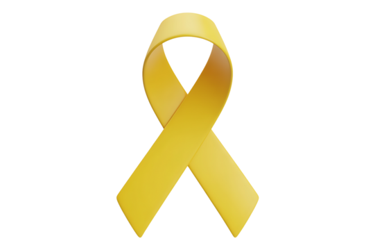 Yellow awareness ribbon symbolizing suicide prevention, sarcoma awareness, military support, and childhood cancer awareness
