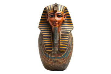 Isolated Pharaoh's mask from ancient Egypt, a golden bust of King Tutankhamun statue