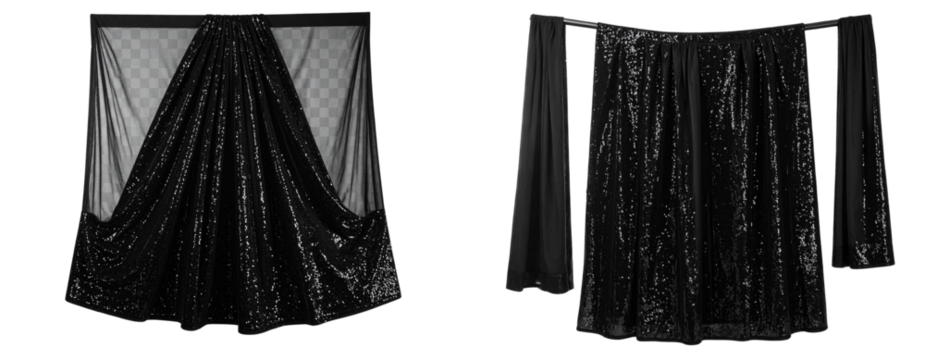 Contemporary Black Sequin Saree Hanging on Invisible Hanger, Transparent Background