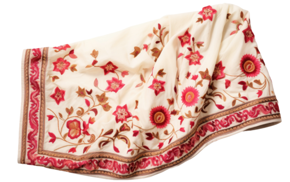 Elegant Indian Saree With Intricate Embroidery Design and Rich Colors Displayed on a Transparent Background for Design Use