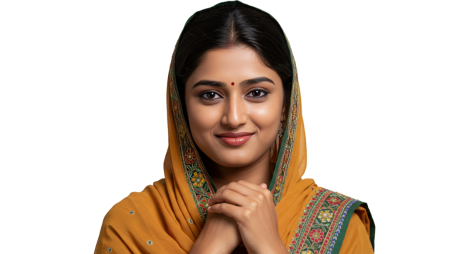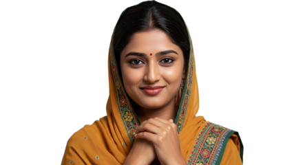 Young woman wearing traditional indian clothing and headscarf, Isolated On Transparent Background