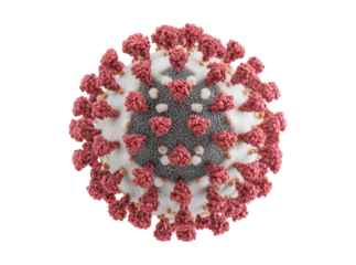 Microscopic 3d render of coronavirus sars cov 2 virus particle, Isolated On Transparent Background
