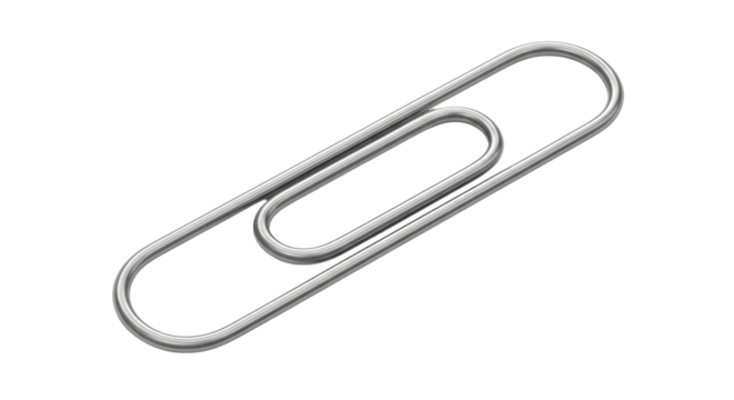Isolated paper clip angled on a bright surface to hold papers and documents together