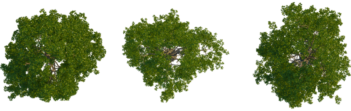 Sassafras albidum tree plan, top view, cutout, transparent background, isolate, Vibrant green deciduous tree canopy viewed directly from above on black
