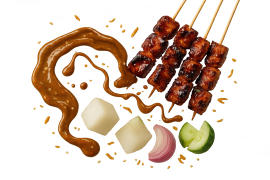 indonesian chicken satay with transparent PNG background - sate ayam