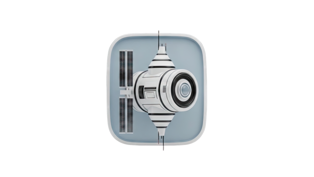 Metal satellite-inspired ornament with geometric antennae design on black background