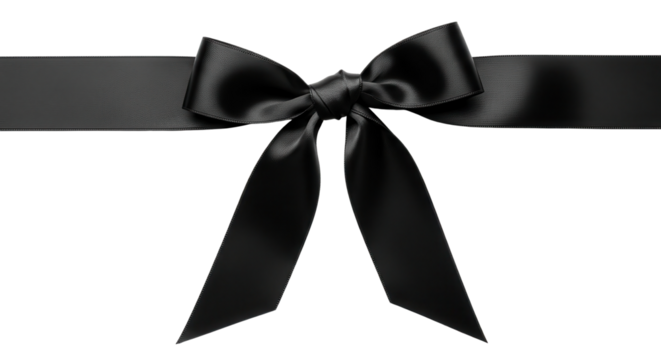 Elegant black satin ribbon bow for gift wrapping or decoration isolated PNG with Transparent Background