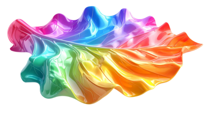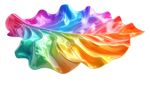 Glossy, flowing, iridescent abstract shape rendered in vibrant rainbow hues