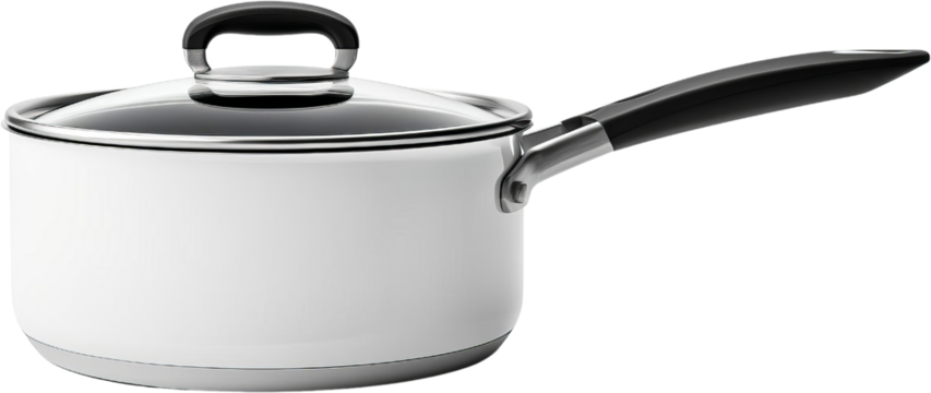 Stainless steel saucepan with ergonomic handle for efficient cooking, cut out