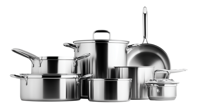 Stainless Steel Cookware Set on Transparent Background