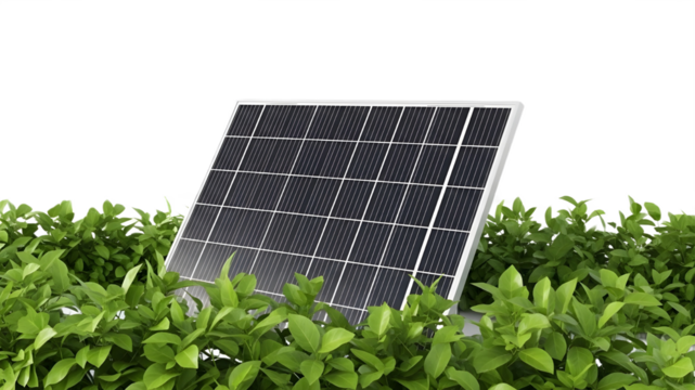 3D Render of Solar Panel Amidst Green Foliage, Renewable Energy Concept isolated PNG with Transparent Background