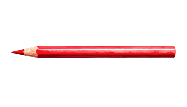 Close-up of a red colored pencil, sharpened, against a black background, capturing texture and detail