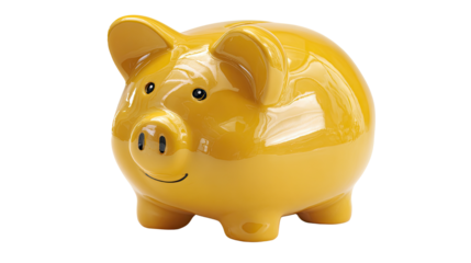 Pink piggy bank with falling gold coins isolated on transparent background, representing savings and financial investment