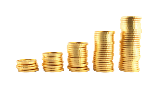 Stacks of gold coins symbolizing financial growth