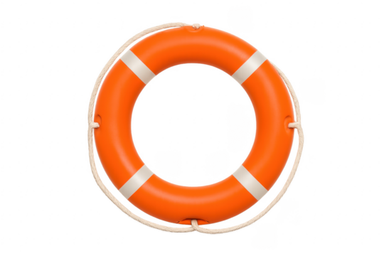Orange lifebuoy with white stripes and rope for safety and rescue
